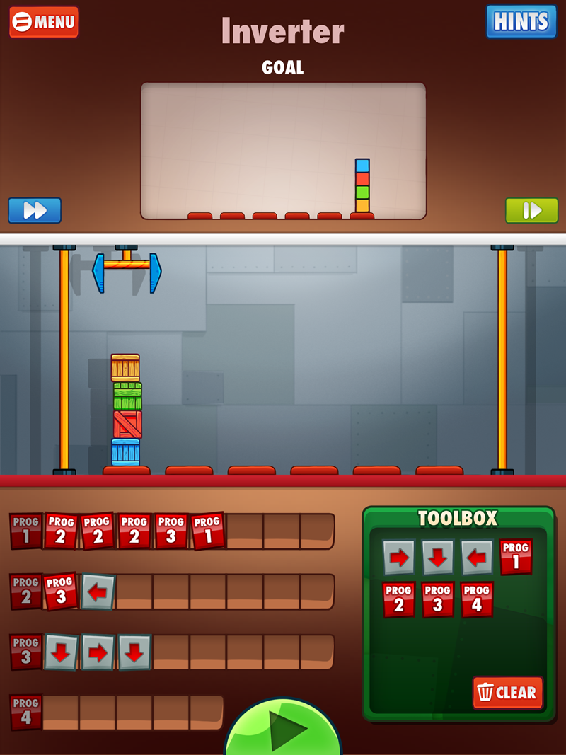 While mastering the art of the function call (Prog 1, Prog 2, etc) is an obvious skill this game requires, a not-so-obvious skill you must master to get far in this game is that of the programming stack. See the Advanced Technique spoiler for an example of using the stack.