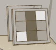 The result should have three black squares, four gray, and two white. You'll know you've got it when the panel comes off. Take the pestle behind it, then backtrack to the starting area.