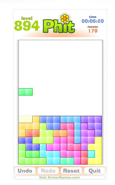 The objective of Phit is to fit all the pieces of each puzzle into the lower yellow 'tray'. You do this by dragging each piece into place. The restriction is that there can be no other piece in the way. If there is, you'll have to move the other piece out of the way first.